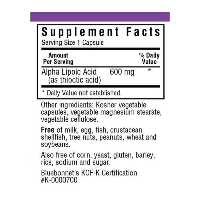 Альфа-Липоевая Кислота 600 мг, Bluebonnet Nutrition, 30 растительных капсул