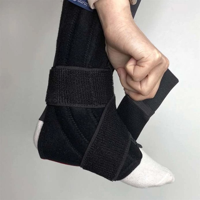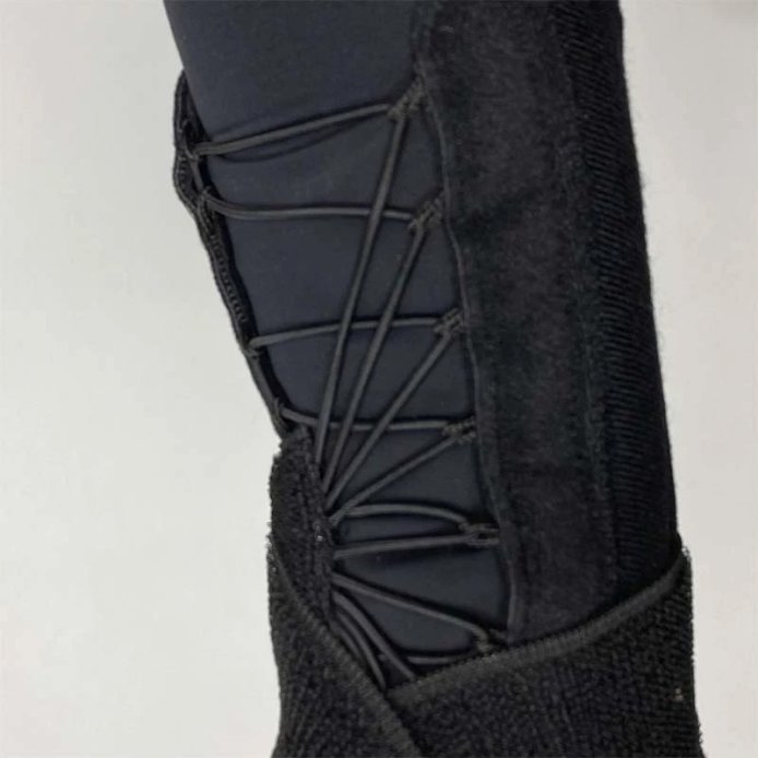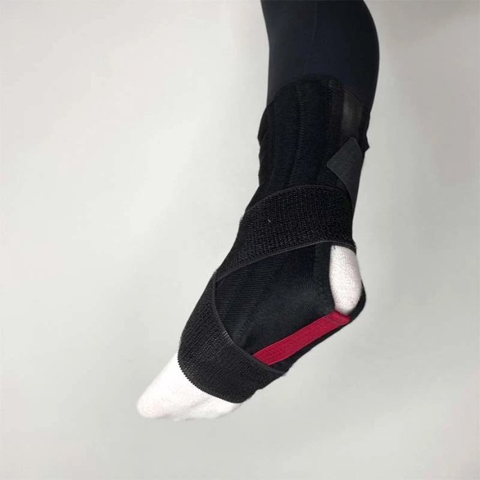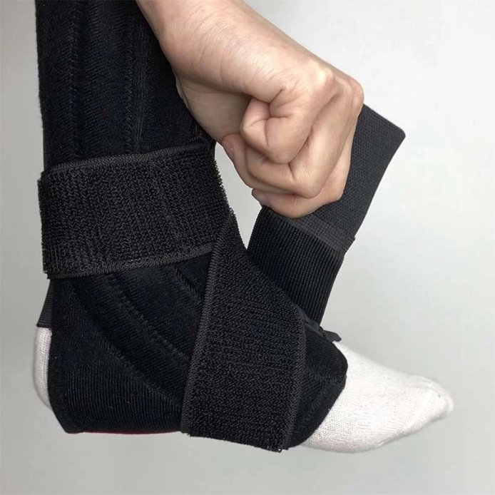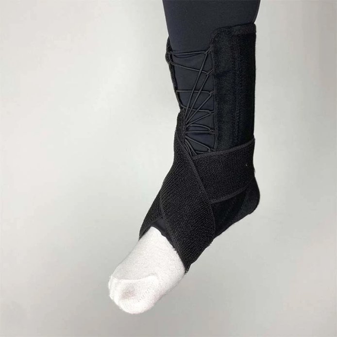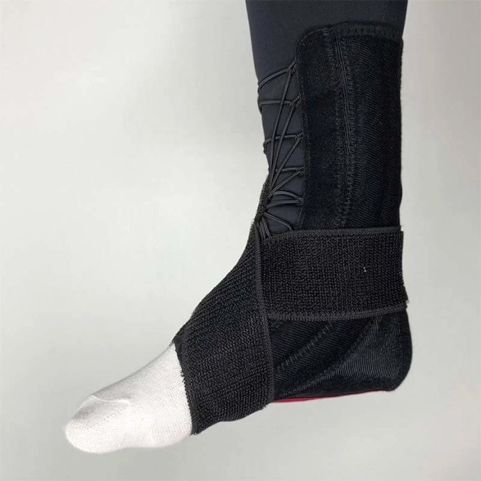 Дополнительная фиксация оказывается шнуровочной системой и ремнями в форме восьмерки, которые обволакивают полностью голеностопный сустав, создавая компрессию.