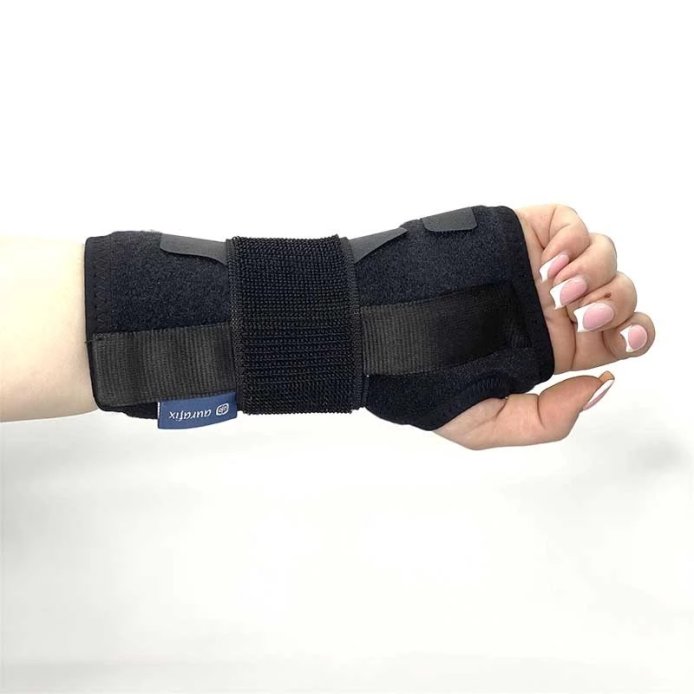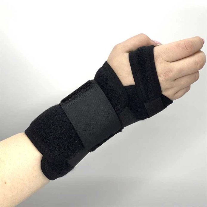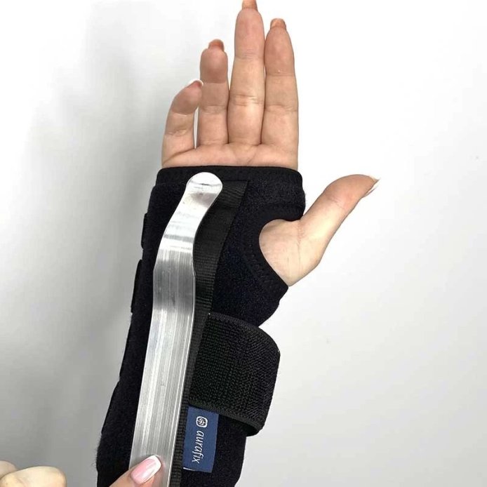 Поддержка обеспечивается металлическим пелотом, иммобилизирующем запястье в необходимом для выздоровления положении.