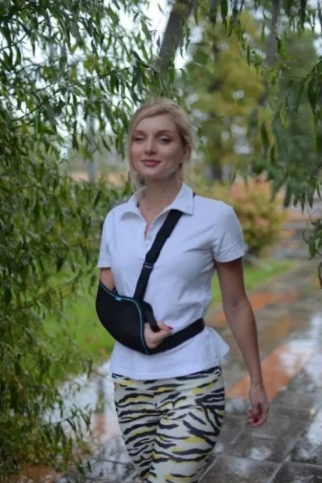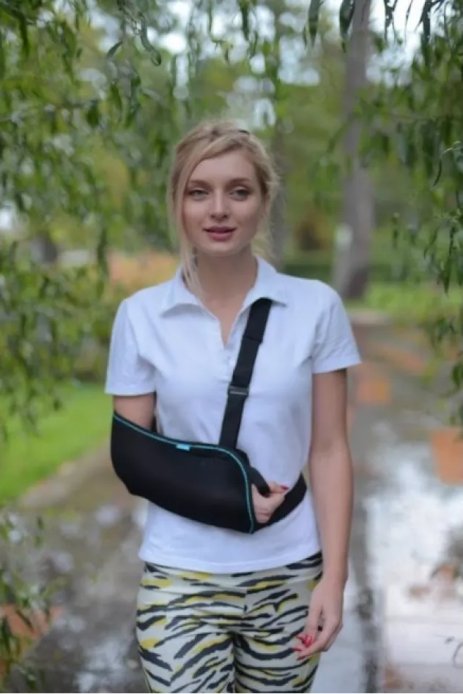 Бандаж фіксує руку у правильному положенні, яке можна відрегулювати за допомогою додаткового ремінця. Перебираючи на себе вагу кінцівки, виріб розвантажує її та знімає біль і напруження.