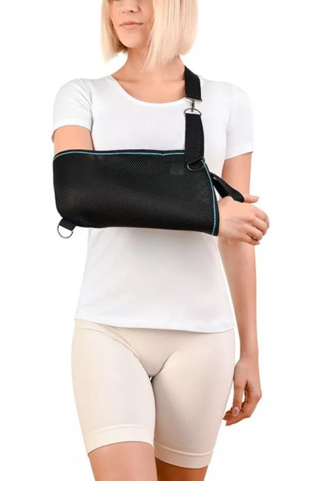 Підтримує плече й руку, широко використовується як самостійний засіб іммобілізації або в поєднанні з іншими бандажами чи ортезами на суглоби верхніх кінцівок, а також із традиційними гіпсовими пов’язками. Проста й ефективна конструкція бандажа забезпечує якісне розвантаження й фіксацію суглобів в опорній муфті, що підтримує руку й оптимізує її положення. Опорна муфта виготовлена з повітро- й вологопроникної тканини, тож кінцівка в ній не перегрівається й не пітніє.