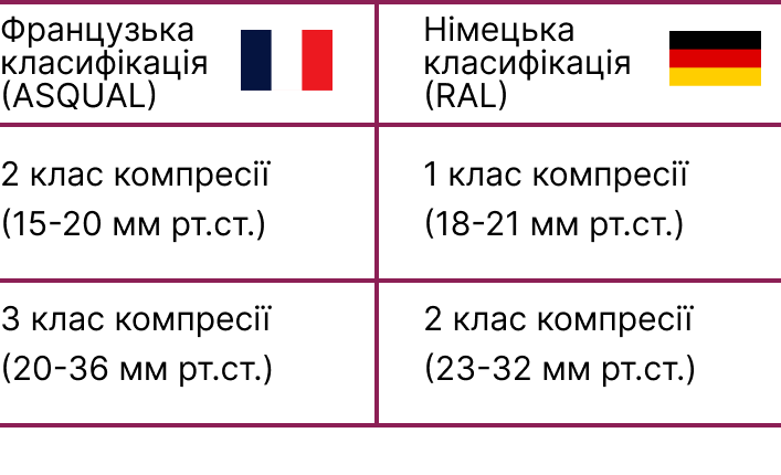 Основним критерієм оцінки якості трикотажу є сертифікація компресії RAL, що гарантує правильний розподіл рівнів тиску.