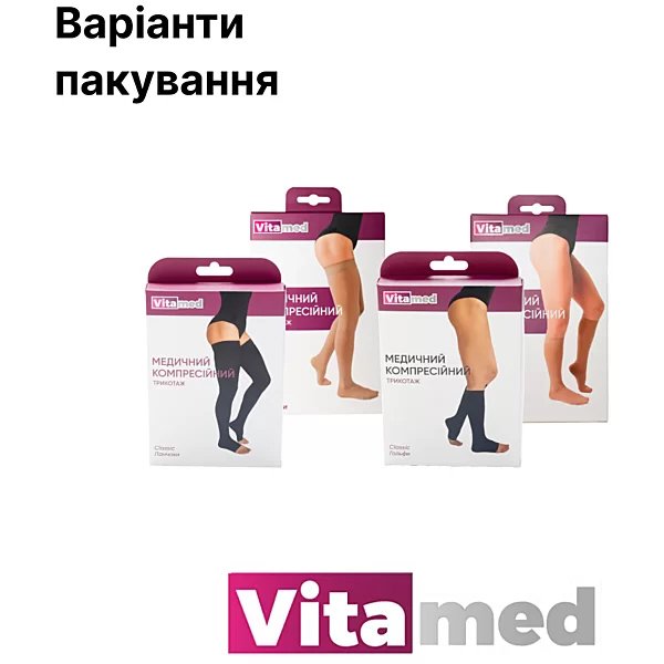 Медичний компресійний трикотаж Vitamed Classic виготовляється з високоякісної тканини Microfilament з додаванням медичної лайкри. Завдяки градуйованій компресії сприяє поліпшенню циркуляції крові та лімфи. Силіконові вставки на гумці забезпечують надійну фіксацію виробу. М'яка та еластична тканина не передавлює пальці стопи та забезпечує надійну фіксацію.