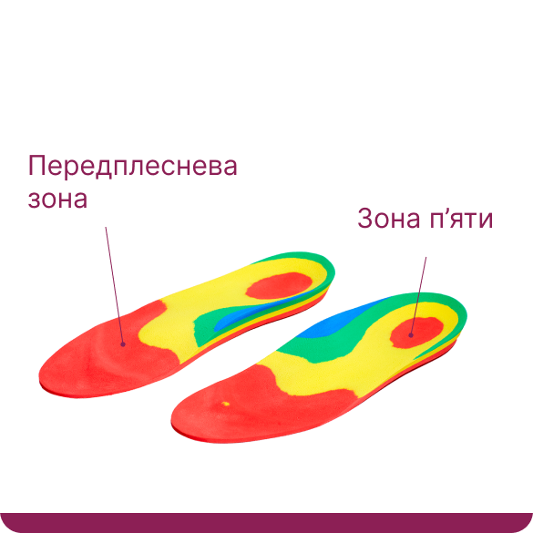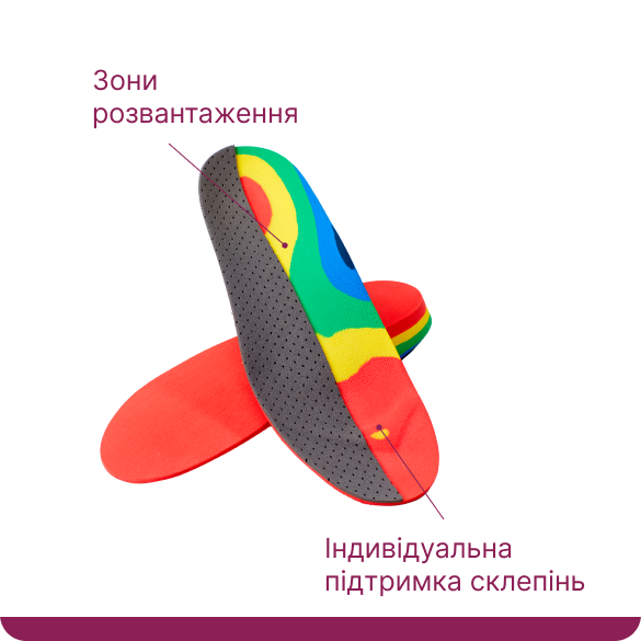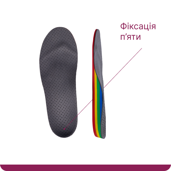 Висота пелот під вашу стопу. Підтримка склепіння стопи завдяки індивідуальній висоті бортиків. Надійна фіксація п'яти попереджає деформацію склепіння стопи.