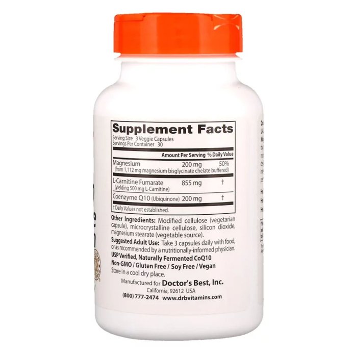 Коэнзим Q10, L-Карнитин и Магний, CoQ10 L-Carnitine Magnesium, Doctor's Best, 90 капсул