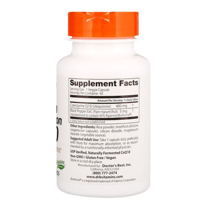 Коэнзим Q10 Высокой Абсорбации 400 мг, BioPerine, Doctor's Best, 60 желатиновых капсул