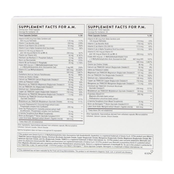 Двухфазный комплекс мультивитаминов от Thorne Research поможет вашему организму поддерживать энергию на оптимальном уровне для ведения активной жизни. В дневную формулу витаминов входят все необходимые взрослому человеку микроэлементы в повышенных, но безопасных концентрациях. Витамины группы В необходимы для правильной работы нервной, сердечно-сосудистой, пищеварительной систем, корректного жирового и углеводного обмена в организме. Также от В-группы напрямую зависит выработка энергии. Витамины А, С и Е считаются базовыми витаминами, которые комплексно влияют на организм, поддерживают и укрепляют иммунитет, имеют антиоксидантное свойство. Витамины К1 и К2 нужны для здоровья крови, правильной свертываемости и кроветворения. Минералы, которые в полном своем объеме входят в состав мультивитаминов Элит от Thorne Research, также необходимы любому взрослому человеку. От правильного содержания минералов в организме зависит не только здоровье зубов, костей, суставов и связок, но также здоровье щитовидной железы, сердца, нормализация давления, внешний вид. Как в дневной, так и в вечерней формулах, содержатся фитосомы куркумина и зеленого чая. Эти составляющие прекрасно снимают воспалительные процессы не только в суставах (что особенно полезно для спорстменов и людей старшего возраста), но и по всему телу. Также в вечерней формуле препарата содержатся растительные экстракты, которые обеспечат спокойный и качественный сон, уменьшат тягу к еде в вечернее время, наладят работу кишечника.