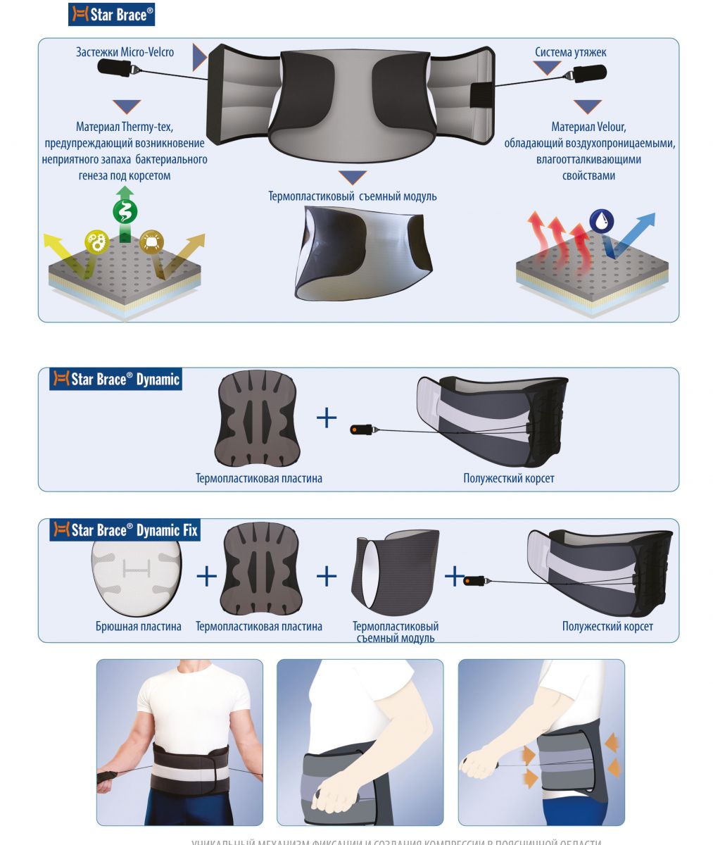 Напівжорсткий корсет з динамічної фіксацією попереково-крижового відділу Star Brace Dynamic Orliman - це унікальний, продуманий механізм, який рівномірно розвантажує і стабілізує хребетний стовп, надає необхідну підтримку спині, забезпечує тривале перебування в анатомічно правильному положенні.