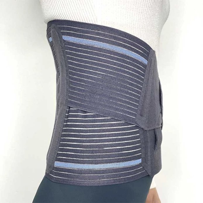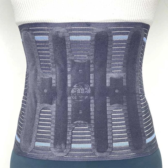 Передняя сторона состоит из 2 частей. Широкая часть предназначена для поддержки более низкого абдомена. Узкая — уменьшает боль в области межпозвоночных дисков.