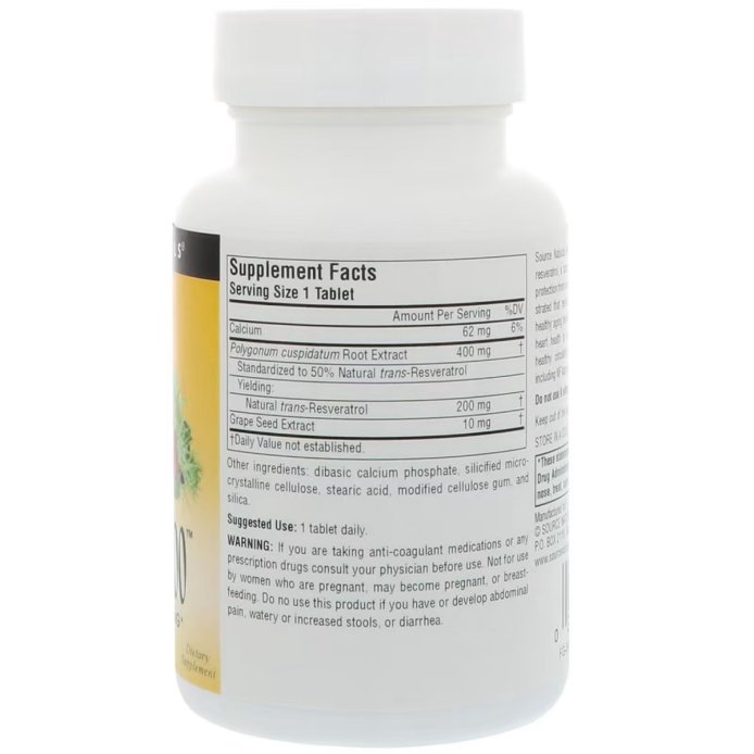 Ресвератрол, 200 мг, Resveratrol, Source Naturals, 30 таблеток