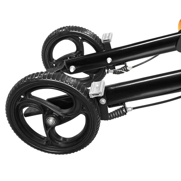 - Гальмування: для гальмування потягніть руків’я догори. При тривалому паркуванні, тримайте руків’я гальма рукою та міцно натисніть на нього; коли чути «клацання», стоянкове гальмо відкривається;