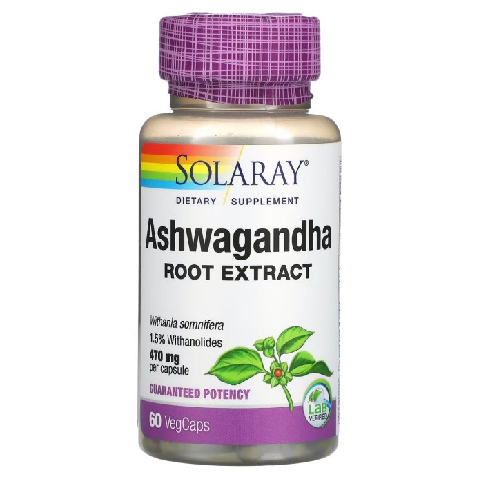 Ашваганда, 470 мг, Ashwagandha, Solaray, 60 вегетаріанських капсул