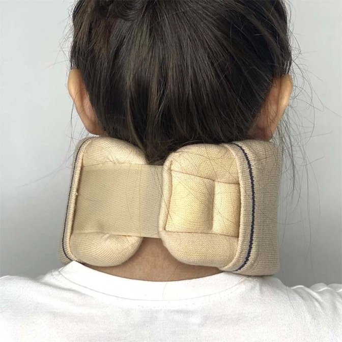 Бандаж виготовлений у вигляді плоскої стрічки з гіпоалергенного пінополіуретану середньої щільності. Для зручності носіння та догляду на середню частину виробу додається муфта з бавовняного трикотажу. Виріб надає розслабляючий і зігріваючий ефект на м'язи шиї.
