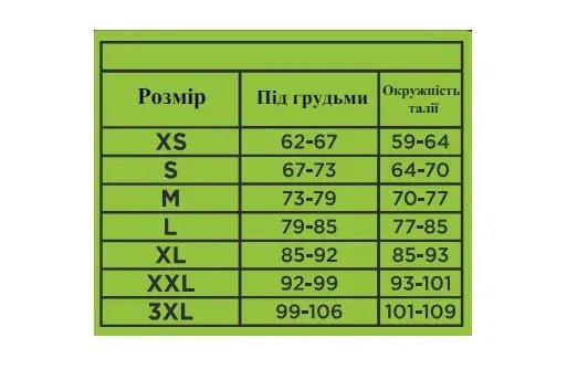 Цей компресійний бандаж виготовлений з еластичної тканини з 3- ма вставками й застібається на липучки. Використовується після ліпосакції живота, пахової зони та попереку. Бандаж, який виготовлений з підтримувальної, еластичної тканини, знижує ризик травмування в зоні хірургічного втручання, прискорює кровообіг, забезпечує швидке зняття набряків і прискорює процес загоєння.