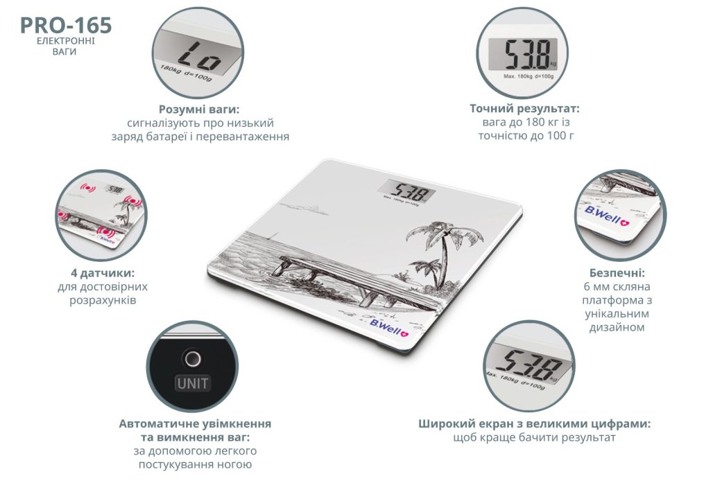 Характеристики: Електронні ваги B.Well PRO-165 Білі