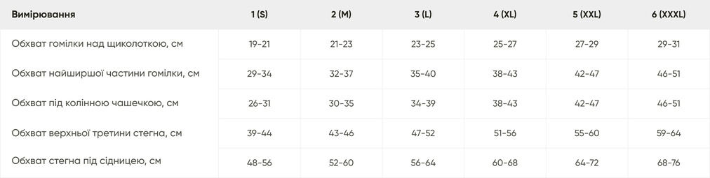 ТАБЛИЦЯ РОЗМІРІВ