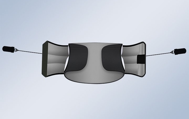 - Унікальний фіксує механізм, завдяки якому в поперековій області забезпечується компресія потрібної інтенсивності. Зручний у використанні, не викликає дискомфорту, завдяки тому, що максимально адаптується до особливостей анатомії користувача. Легко і міцно фіксується і не зміщується під час руху;