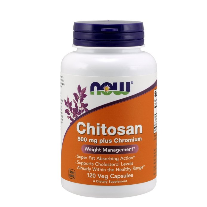 Характеристики: Хітозан 500мг + Хром, Now Foods, 120 вегетаріанських капсул