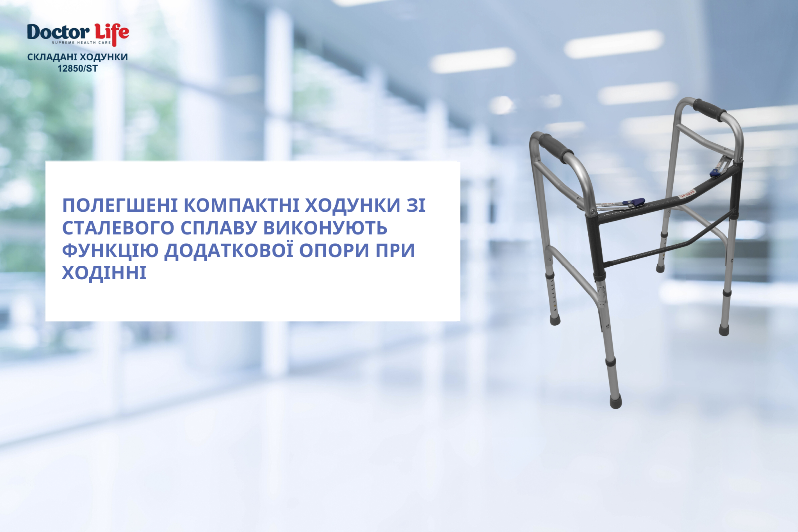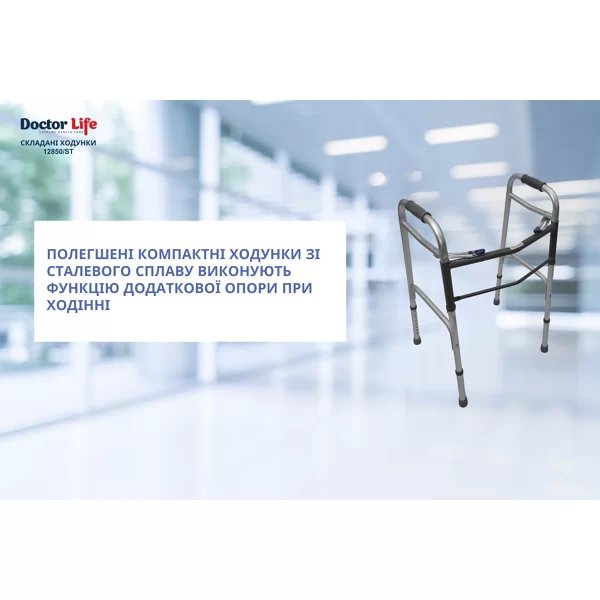 Ходунки складаються з легкого матеріалу та використовуються для забезпечення додаткової підтримки під час ходьби, допомагають зменшити навантаження на таз і спину, знімають напругу з м'язів нижніх кінцівок. Завдяки ходункам Dr.Life 12850/ST людина отримує більшу стабільність, зменшується ризик травмування, а процес реабілітації стає значно більш ефективним і швидким.