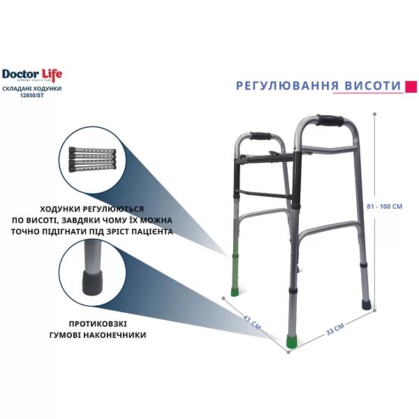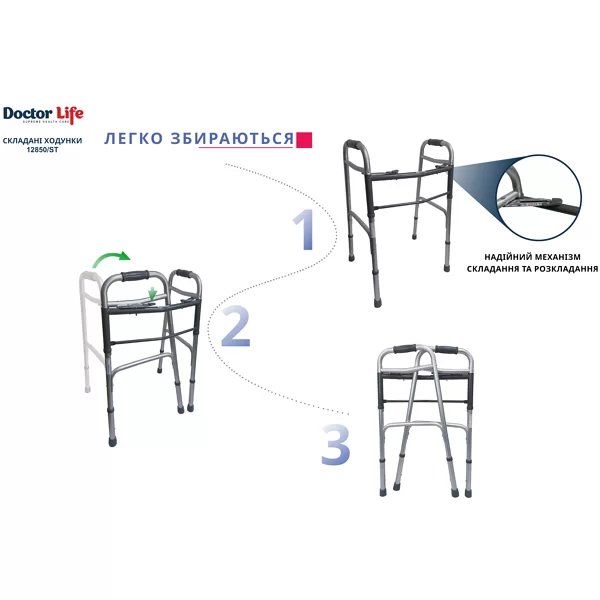 Ходунки складані з двома кнопками, сталеві Doctor Life