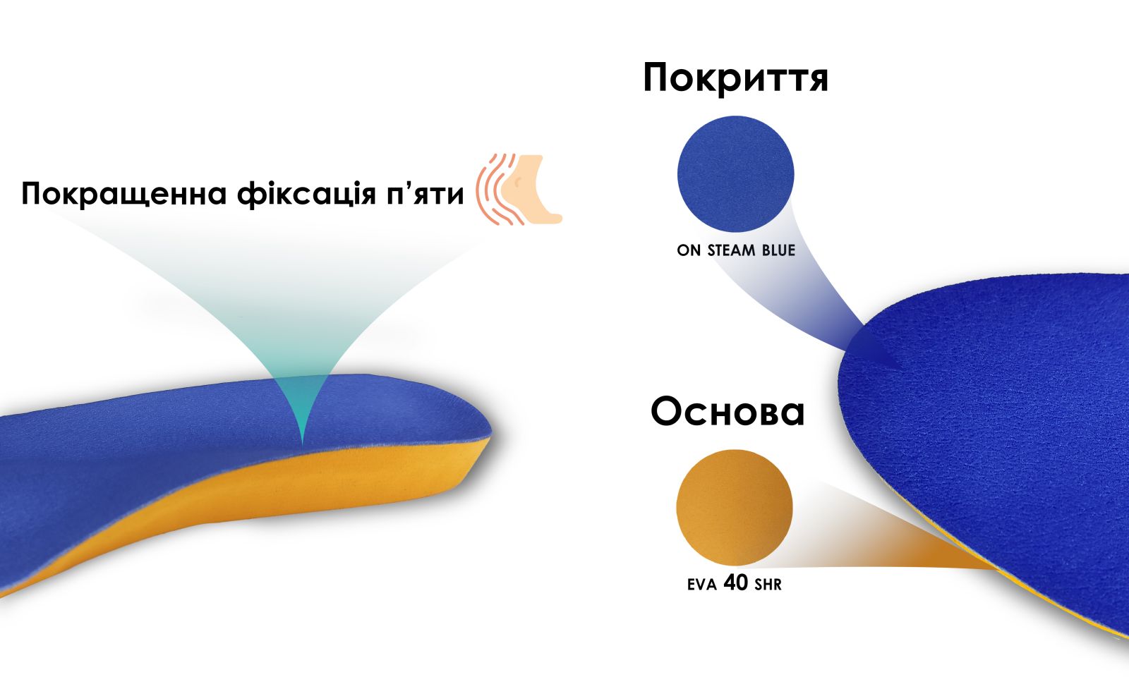 - Фіксація п'яти, надійна підтримка склепінь, рівномірний розподіл навантаження на стопи;