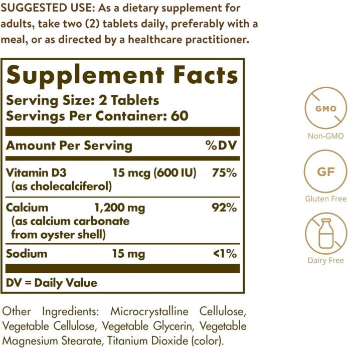 Кальцій з мушлі устриці з вітаміном D3, 600 мг, Calcium from Oyster Shell with Vitamin D3, Solgar, 120 таблеток