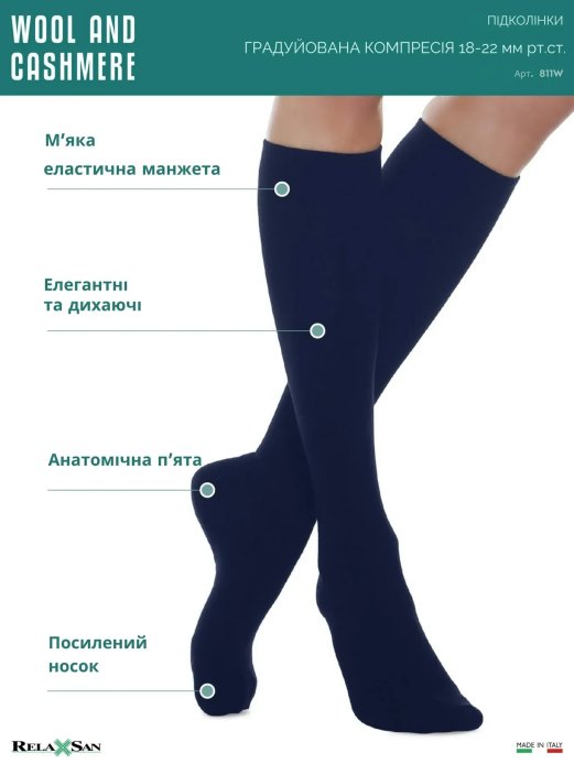 Компресійні гольфи Relaxsan для подорожей і щоденного використання — вовна та кашемір, 1 клас (18–22 мм рт. ст.)