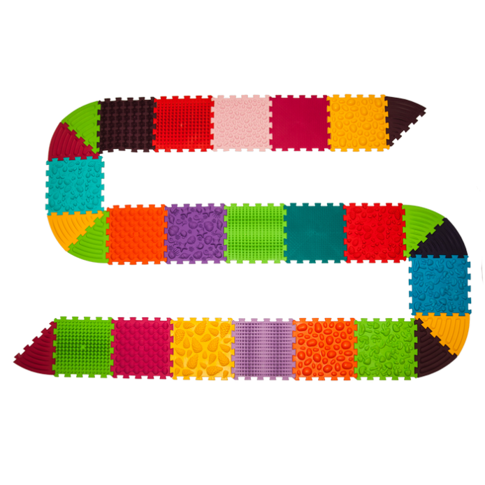 Усі пазли виробляються з одного матеріалу – безпечного, гіпоалергенного ПВХ без шкідливих домішок. Але завдяки різним текстурам відчуваються по-різному. Травка, мушлі, галька, гриби відносяться до більш м'яких пазлів. Вежі, Їжачки, Морські, Жолуді – до середніх. Піраміда, Шипи, Лотос, Шишки відносяться до більш твердих пазлів. Вплив поверхонь різної твердості надає найкращий ефект для масажу, тренування стоп та сенсорної інтеграції.