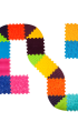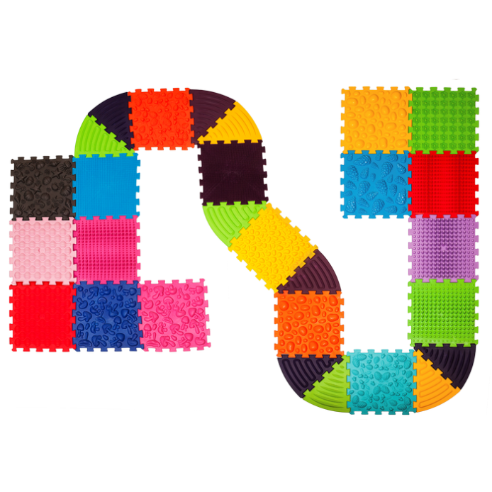 Набори із трикутними поворотними пазлами дозволяють створювати хвилясті доріжки, круги, візерунки, перетину. Таким чином ви зможете створювати маршрути навколо предметів меблів, кутів, економити місце в кімнаті, а головне – стимулювати фантазію та інтерес дітей до занять на килимках.