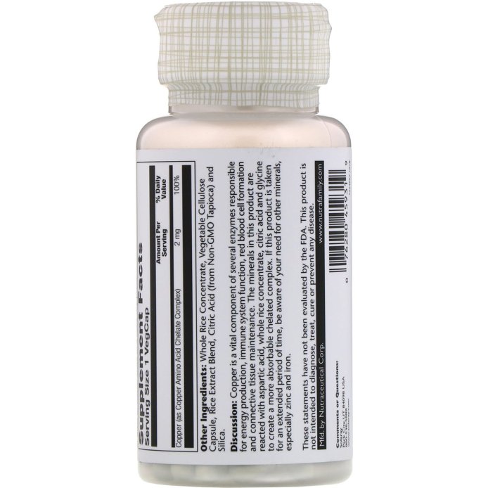 Мідь, Copper, Solaray, 2 мг, 100 капсул