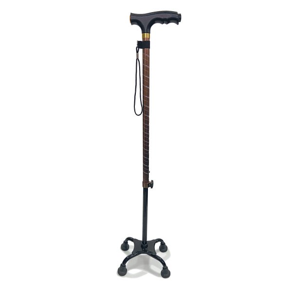 Палиця алюмінієва чотирьохопорна Toros-Group (Тип 1004) - призначена для забезпечення додаткової підтримки під час ходьби та реабілітації людей з обмеженими фізичними можливостями. Вона підходить для людей після травм, переломів, інсульту та при дегенеративних захворюваннях суглобів. Палиця оснащена телескопічним механізмом, що дозволяє регулювати висоту від 68 до 90 см, підлаштовуючи її під зріст користувача. Широка основа з чотирма опорними ніжками забезпечує додаткову стійкість і рівновагу. На рукоятці розташований вмонтований LED ліхтарик для безпечного пересування в темний час доби, а додаткова фіксація ремінця на зап'ясті додає комфорту під час експлуатації.