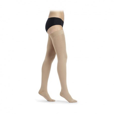 Компанія Sigvaris, яка першою запропонувала лікування венозних розладів компресійним трикотажем, виготовляє вироби найвищої якості з доведеною численними випробуваннями ефективністю. Панчохи серії Essential CLASSICAL випускаються у двох варіантах: із закритим і відкритим миском. Вони відмінно тягнуться, але при цьому забезпечують задекларований компресійний ефект. Підходять і чоловікам, і жінкам. Непрозоре матове полотно відмінно приховує розширені вени. Підошва зміцнена у місцях, де подібні вироби найчастіше перетираються, це продовжує термін використання панчіх. Зручна резинка з силіконовим фіксатором у вигляді круглих м’яких цяток відмінно утримує панчохи на місці, не перетискає ногу й не залишає на шкірі слідів.