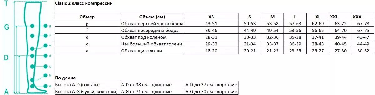 Висота A-G (панчохи, колготки) | A-G 72-83 см - стандартні | A-G до 72 см - короткі |
