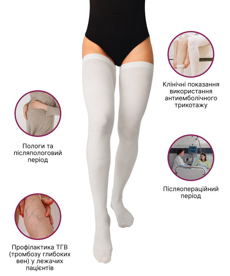 - клінічні показання використання компресійного медичного антиемболічного трикотажу;