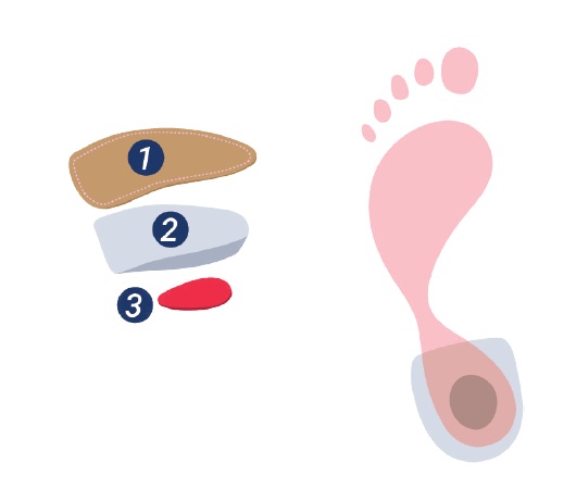 - 3. Нижній шар – латексна подушечка з м’якою зоною: поглинає удари та зменшує тиск на п’яткову область;