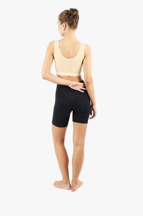 Бюстгальтер виконаний з гіпоалергенної, дихаючої тканини, що забезпечує оптимальний мікроклімат для шкіри, запобігає подразненням та натиранню. Матеріал еластичний, але водночас забезпечує надійну компресію, необхідну для підтримки грудей у стабільному положенні.