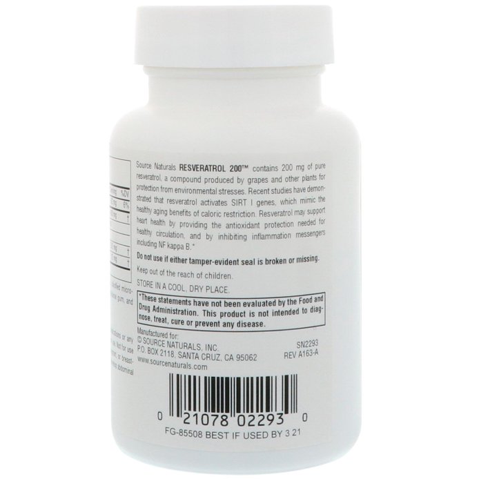 Ресвератрол, Resveratrol, Source Naturals, 200 мг, 60 таблеток