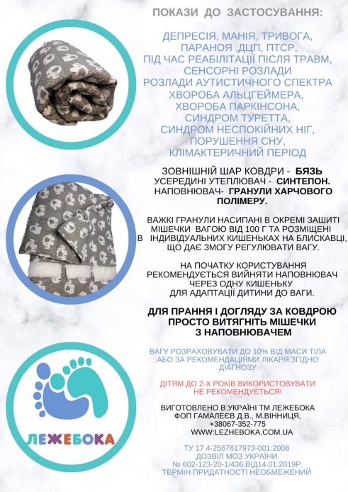 Сенсорна (обтяжена) ковдра, 120 см Х 150 см, ТМ Лежебока