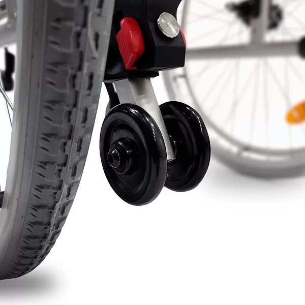- Коляска оснащена антиперекидачами, які забезпечать безпеку пересування на нерівних поверхнях, додають додаткову опору та стабілізують коляску.