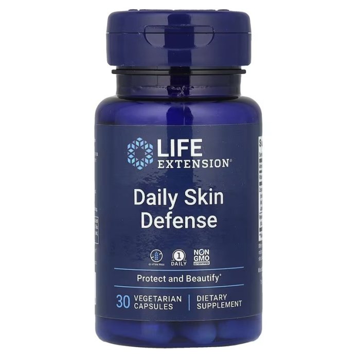 Щоденний захист шкіри, Daily Skin Defense, Life Extension, 30 вегетаріанських капсул