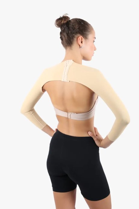 Продукт поширюється від зап'ясть, він використовується після операцій ліпосакції плечей і рук. Поєднується з 3-ступінчастим регульованим гачком ззаду та додатковим прозорим ремінцем, який можна регулювати спереду.