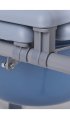 Стілець-туалет з регулюванням висоти ТИП 1070 складається з каркасу з пластмасовими ручками, стійки якого виготовлені з високоміцної труби з нержавіючої сталі захищеної антикорозійним порошковим покриттям, горщка, сидіння та кришки туалету, гумових наконечників та кріпильних елементів.