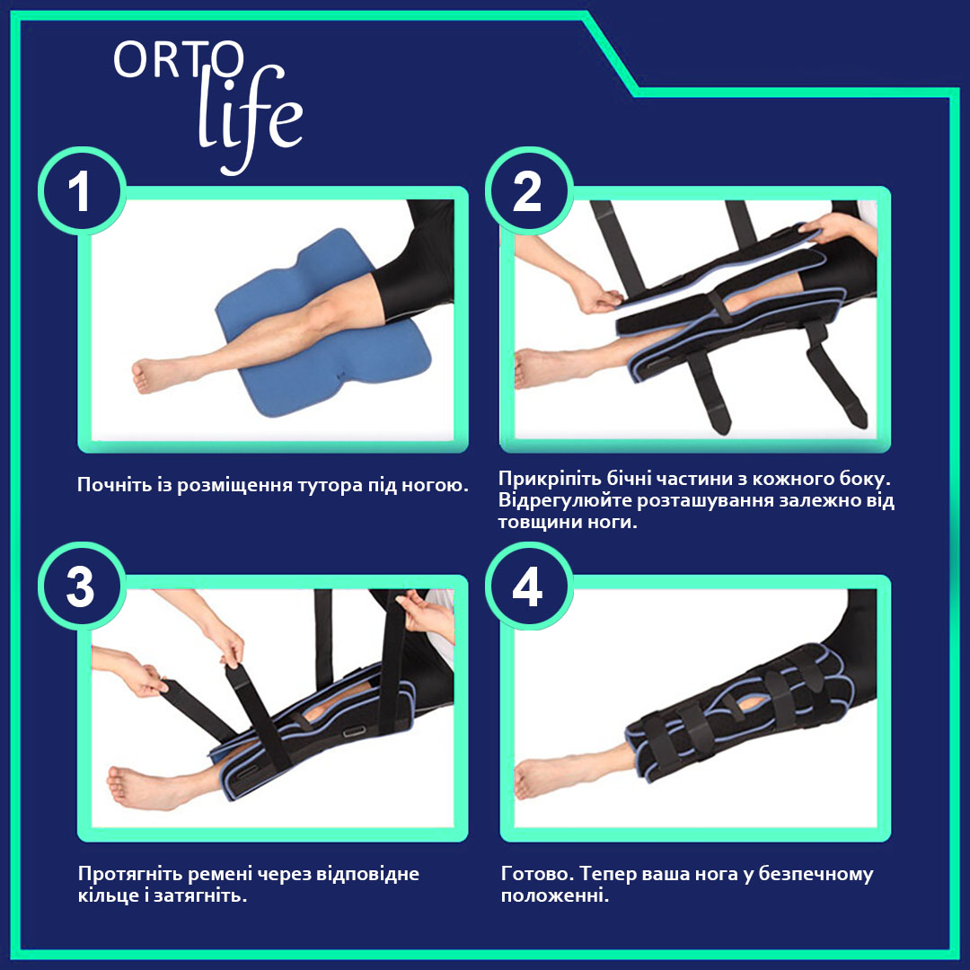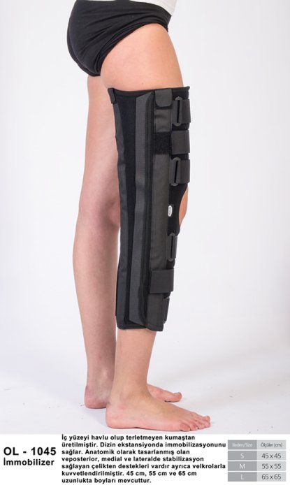 Тутор призначений для іммобілізації та стабілізації колінного суглоба під час розгинання. Він виготовлений із високоякісного матеріалу, який стимулює рецептори глибоких відчуттів, покращуючи сенсомоторне сприйняття. Крім того, виключається ризик появи саден та пролежнів. Дихаючий фіксуючий колінний ортез застосовується після травм і процедур в області коліна. Він оснащений регульованими ременями, які гарантують найкраще прилягання до суглоба та відповідний рівень стиснення. Він також має бічні та задні металеві ребра жорсткості, які фіксують кінцівку при розгинанні або згинанні. Стабілізатор має статичний ефект. Швидке та легке розбирання м'яких елементів дозволяє підтримувати ортез у чистоті.