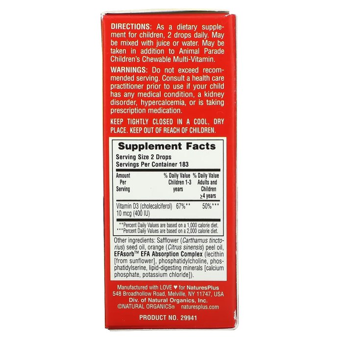 Вітамін D відіграє важливу роль у загальному стані здоров'я, але не всі одержують достатню його кількість разом із сонцем. Дитячі краплі зі смаком апельсина надають вашій дитині натуральний вітамін D3 в безпечній, швидкій і зручній формі.