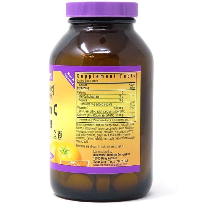 Вiтамiн С, 500мг, Смак Апельсину, Earth Sweet Chewables, Bluebonnet Nutrition, 90 жувальних таблеток
