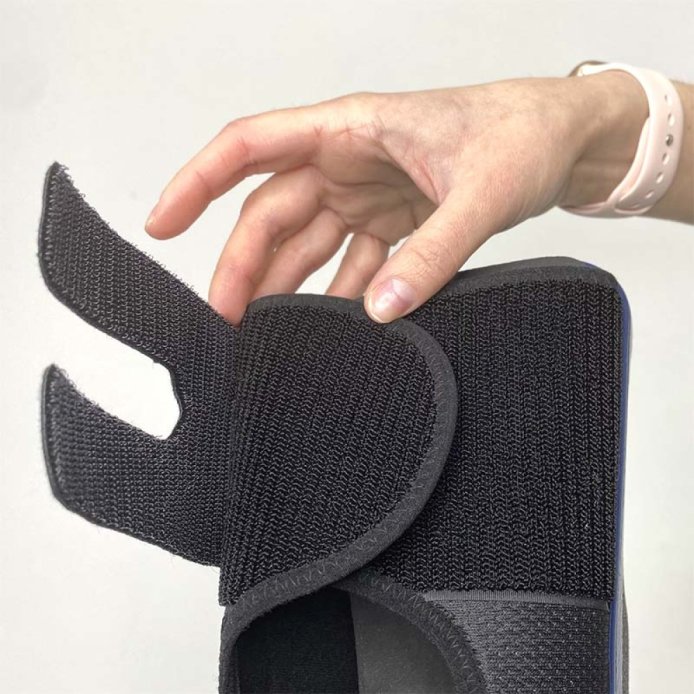 Спеціально розроблена застібка-липучка дозволяє використовувати його на обох ногах.