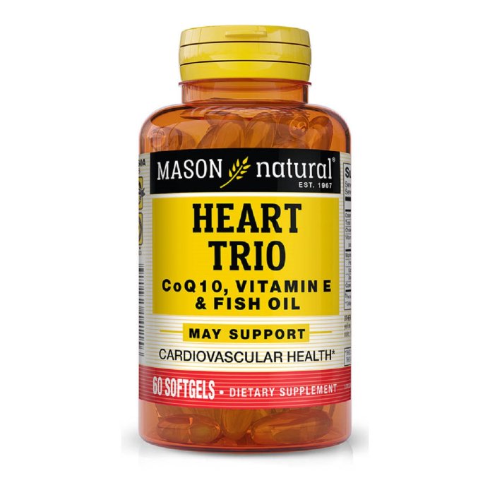 Здоров'я Серця і Судин, Heart Trio CoQ10, Vitamin E & Fish Oil, Mason Natural, 60 гелевих капсул