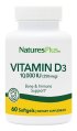 Витамин D3, 10 000 МЕ, Natures Plus, 60 гелевых капсул
