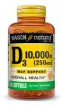 Витамин D3 10000 МЕ, Vitamin D, Mason Natural, 30 гелевых капсул