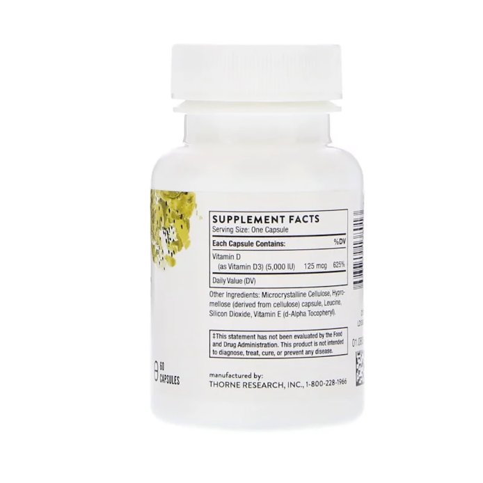 Витамин D3, 5000МЕ, Thorne, 60 капсул